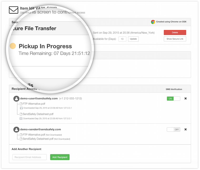 Using SendSafely makes it clear to your customers that the security and privacy of their information is a high priority. SendSafely leverages an end-to-end encryption model by design, so files can only be decrypted by the sender and recipients.